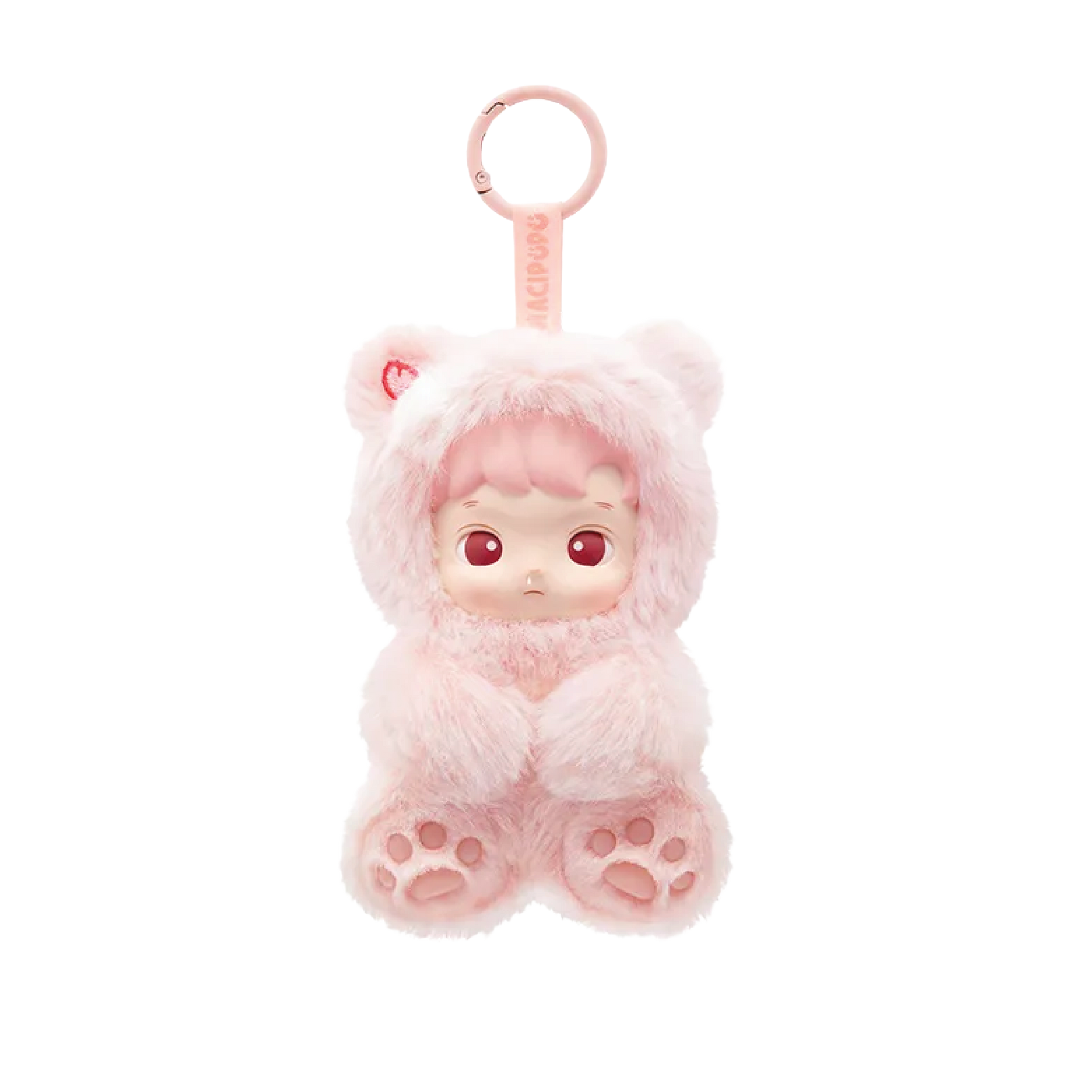 The series features vinyl plush pendant blind boxes—adorable, fuzzy Hacipupu figures styled like gummy bears with small loops for hanging.